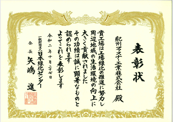 - 紀州ファスナーが「全国みどりの工場大賞 会長賞」を受賞