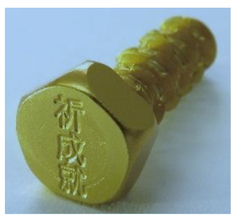 五角(ごうかく)頭に「祈成就」の刻印付きねじ『ギザタイト』